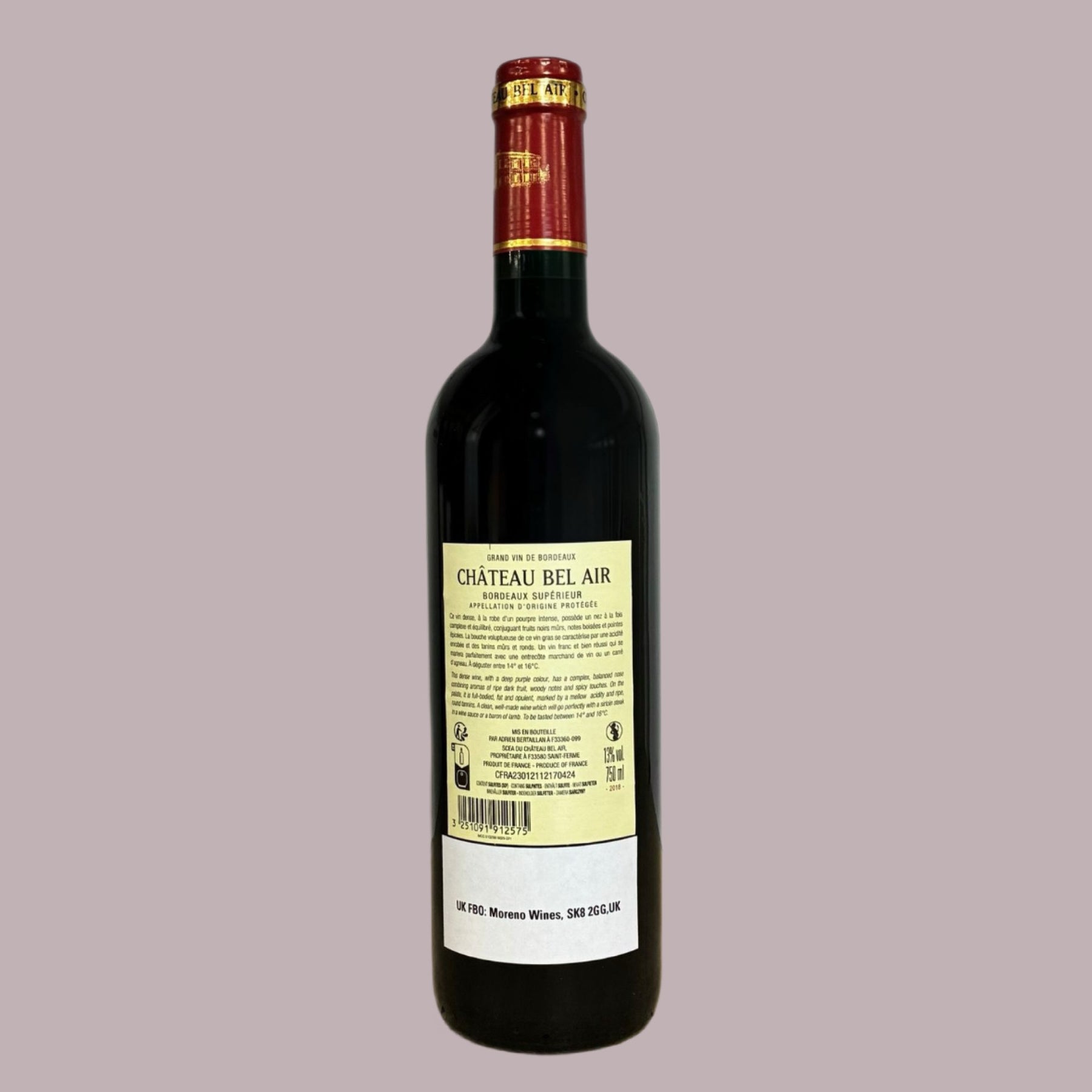 A classic Bordeaux blend of Cabernet Sauvignon and Merlot, Chateau Bel Air is a full-bodied, complex wine with notes of blackberry, cassis and tobacco.