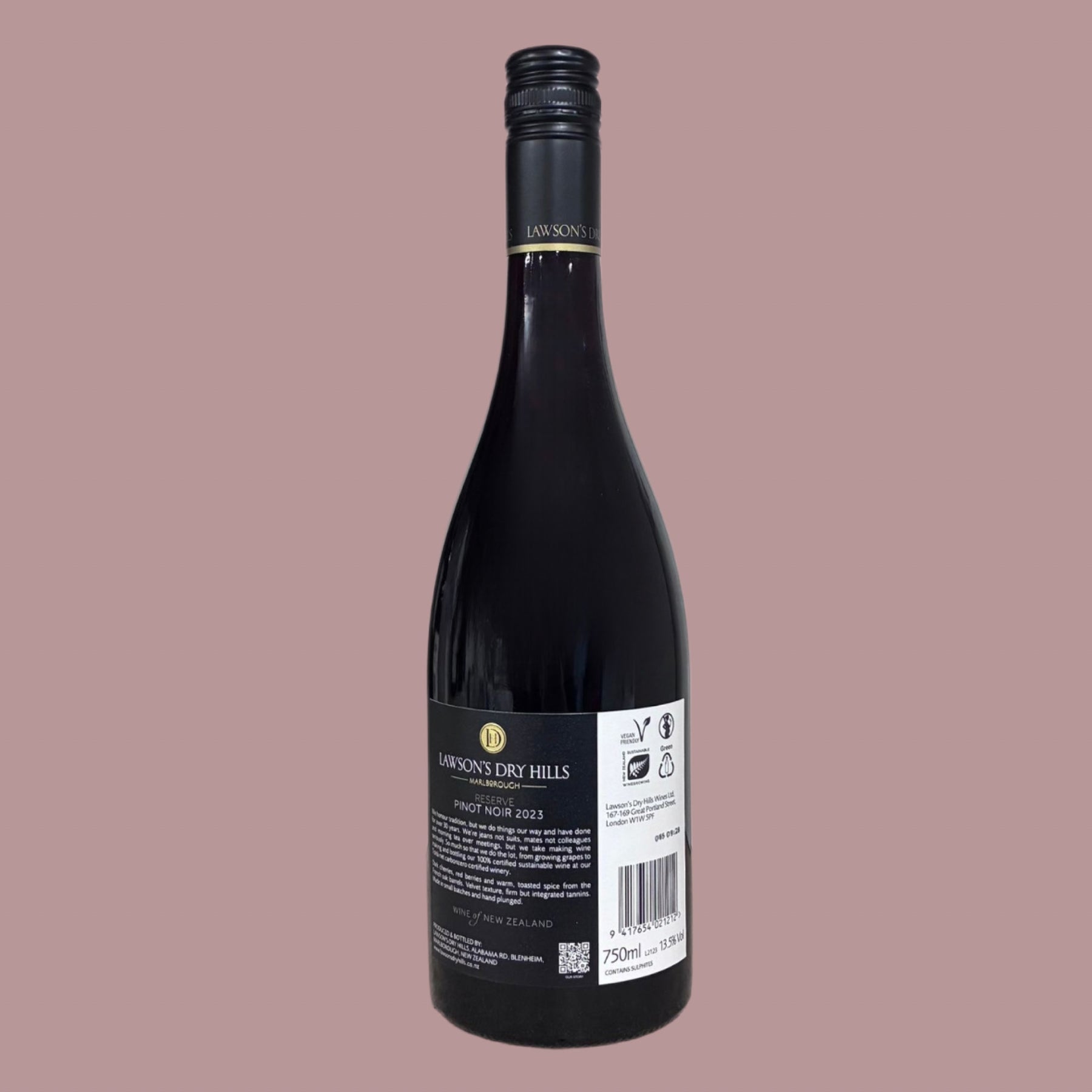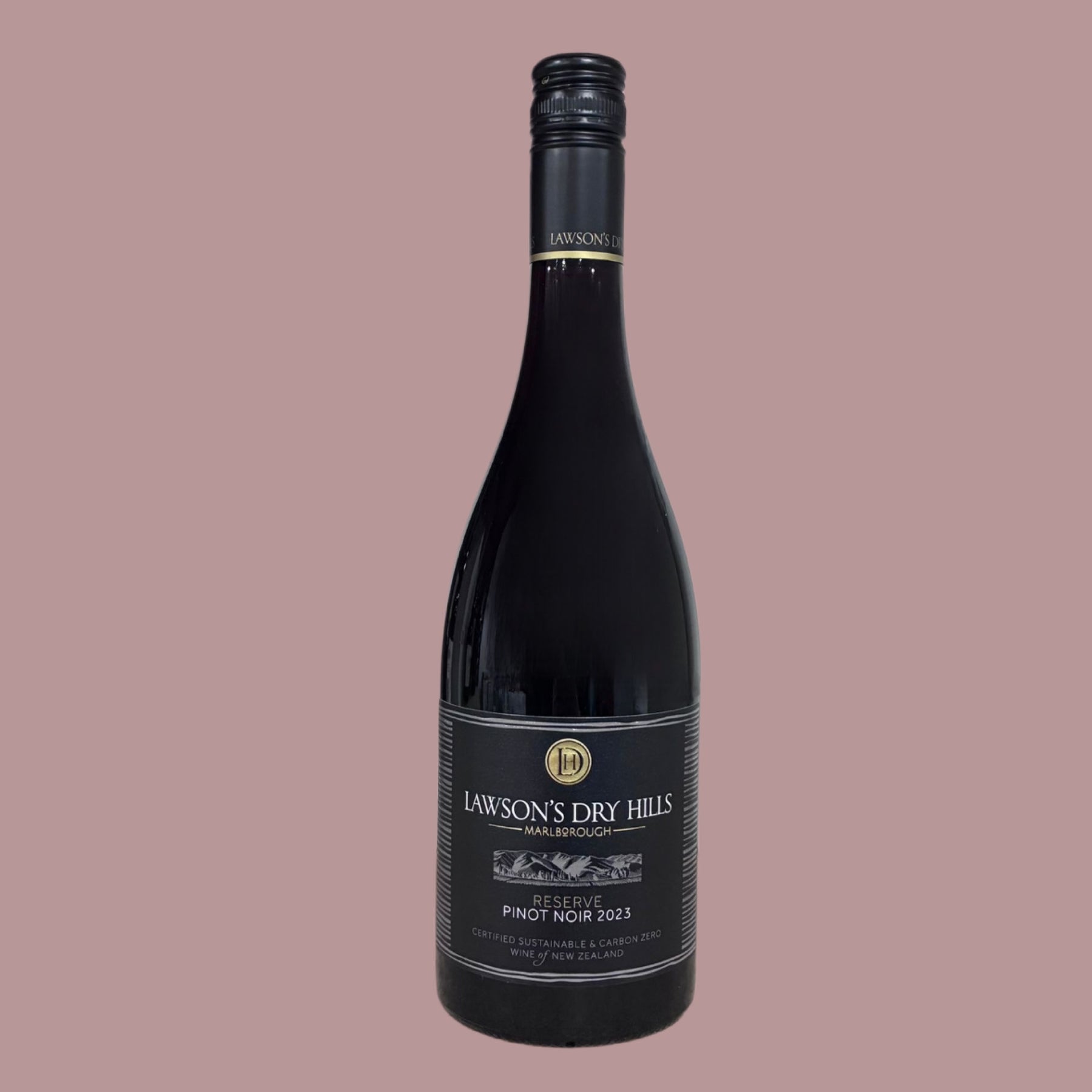 Lawson’s Dry Hills Reserve Pinot Noir is an elegant Marlborough red with vibrant aromas of ripe cherry and plum, layered with subtle spice. The palate is smooth and well-structured, showing bright red berry fruit, fine tannins, and a long, refined finish.