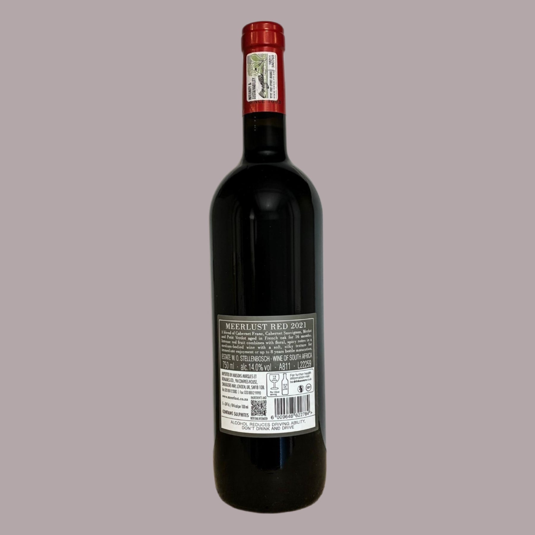 Meerlust Red 2021 displays a youthful ruby-red colour with a subtle garnet hue. The nose shows supple red and black fruit, layered with warm spice and gently supporting oak notes, offering an elegant and approachable expression of the vintage.