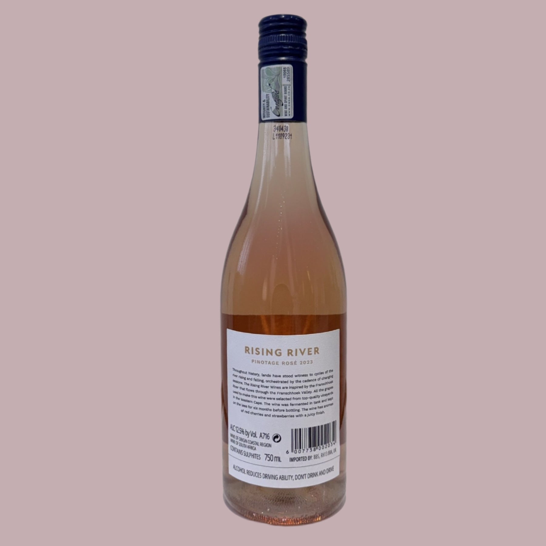 The Rising River Wines were inspired by the river that flows through the Franschhoek Valley and the picturesque mountains that surround this idyllic landmark town. This wine has aromas of red cherries and strawberries and has a juicy finish.